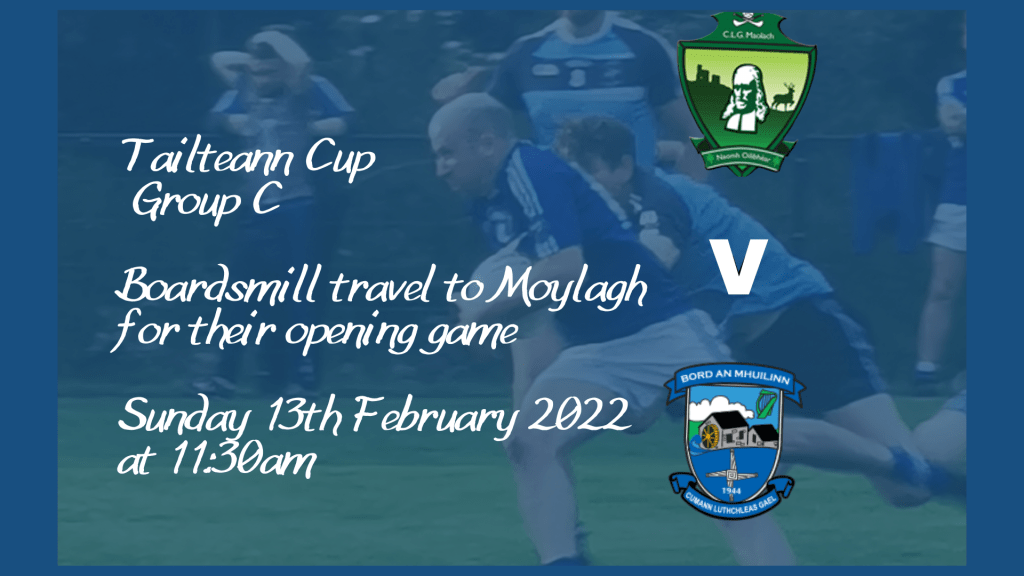 Boardsmill Junior Footballers travel to Moylagh on Sunday for their first match in the Tailteann Cup Group C. Under the new management of Stephen Quirke and Shane Mangan the lads will be looking to impress.