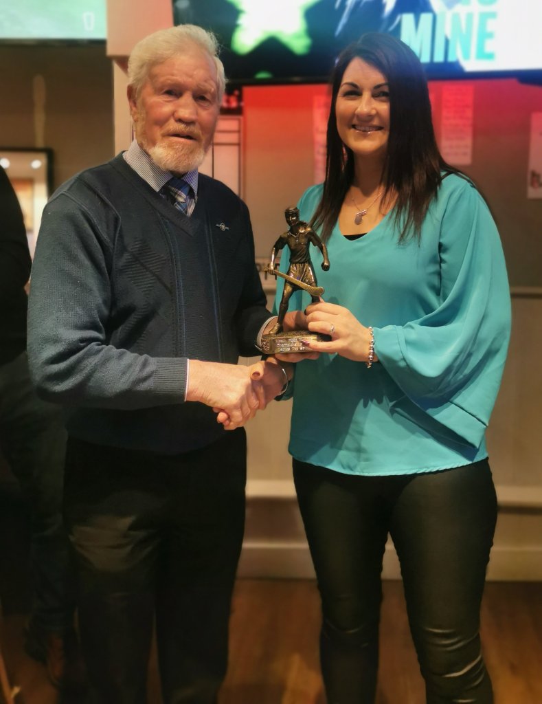 TJ Reilly presents the Ladies Individual Award to Edel Guy, Boardsmill GAA