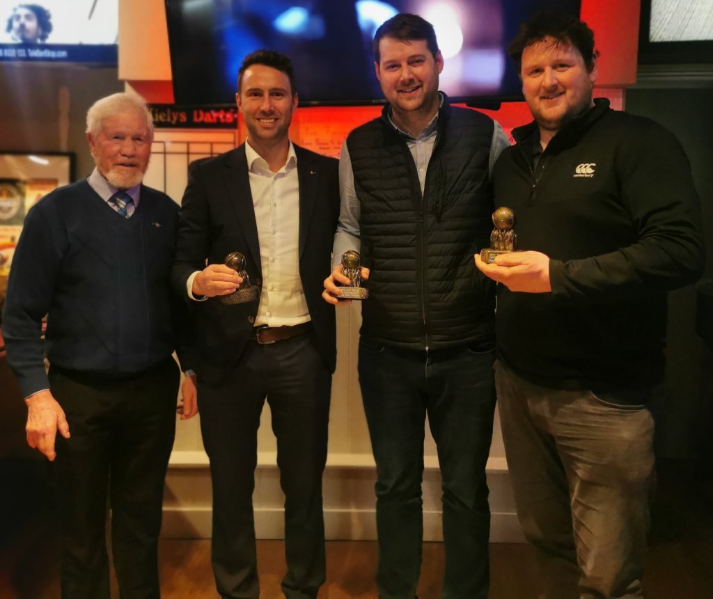 TJ Reilly presents the Men’s Team Prizes to Alan Douglas, Stephen Doyle and Niall Murray all Trim GAA